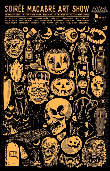 Join us this year for the 3rd year of spooky, creepy, beautiful art, drinks, costumes, and more! Details below on the sick poster by Craig Horky.