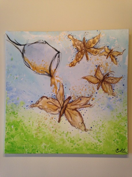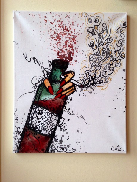 I’m blessed with a day job I enjoy going to everyday. I work at Sandhill Crane Vineyards, and we are apart of the Southeast Michigan Wine Trail. This wine trail puts on events to bring customers to all the wineries on our trail over the course of a weekend- Pioneer Wine Trail, Art Along the Trail. My idea for this was to rangle all my talented staff and their art to show for the entire month of April, and what do you know it worked! Not only were my bosses cool enough to let me run wild with this idea, but they also ran a people’s choice award where our customers could vote for their favorite piece of art, and they awarded the top two a $50 prize. The day I took down all the art, I also got to tally the votes, it was wild how many participated, myself and one of my co workers won, and three of our staff members tied for third.